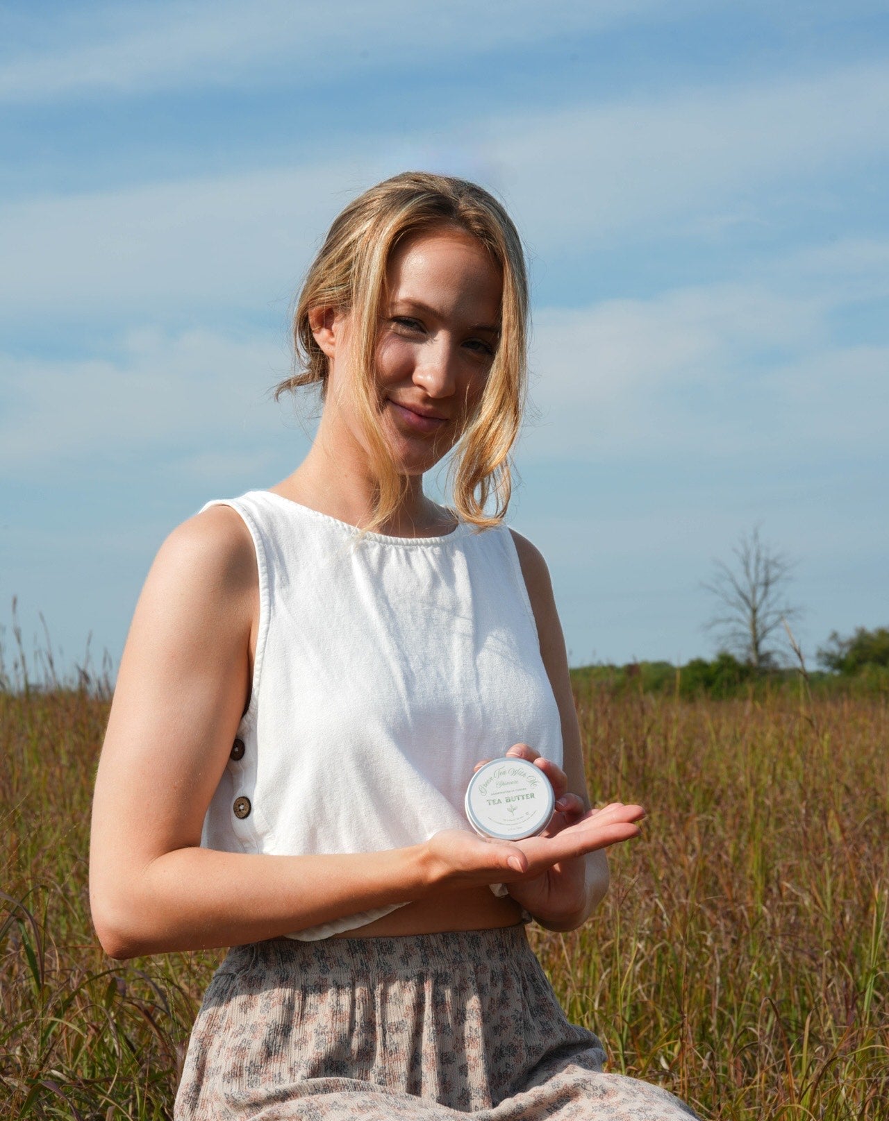 Tea Butter started as a personal shea butter blend created by Spa Owner and Medical Skincare Therapist, Sydney Dalgarno. When her clients at Green Tea With Me Esthetics discovered it, their love for it inspired Sydney to bring it to a wider audience- a tiny tin of pure, plant-based comfort for the skin. Inspired by the rich, lasting moisture of tallow, she set out to create a plant-based version that nourishes the skin in vitamins, nutrients, and velvety hydration, without any heaviness. Each batch is made with such care that only one batch at a time can be produced, ensuring a perfectly smooth consistency.