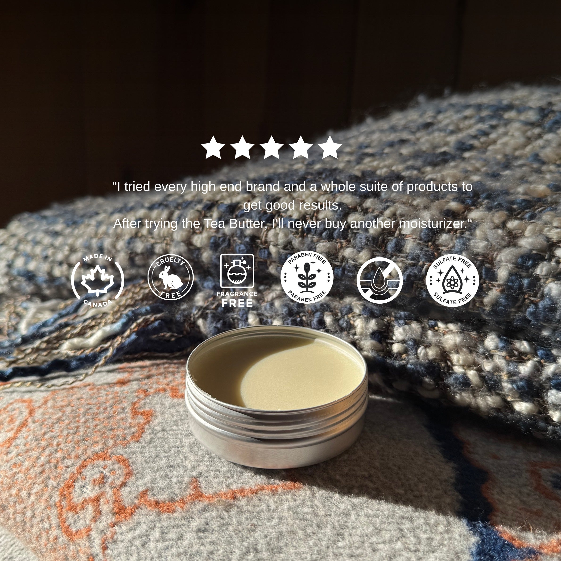 Growing up and living in Ontario, Canada, Sydney struggled with chronically dry, chapped skin, so she began creating her own whipped shea butter moisturizer. When clients at Green Tea With Me Esthetics discovered it and fell in love, their enthusiasm inspired her to share it beyond the treatment room. What began as a personal remedy became a tiny tin of pure, plant-based comfort for the skin.